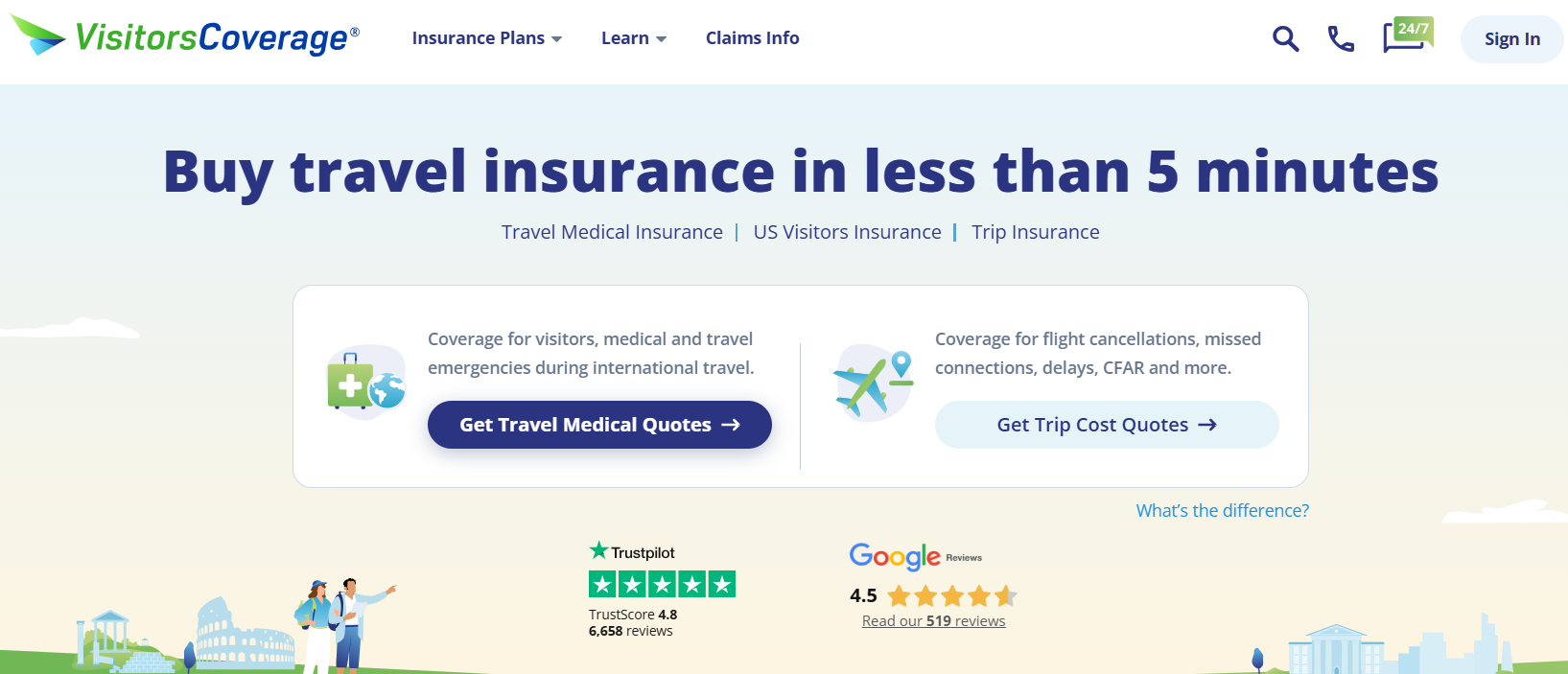 VisitorsCoverage는 미국을 방문하는 외국인 여행자들을 위한 전문 보험 플랫폼이에요. 수십 개의 보험사 상품을 한 곳에서 비교하고 가입할 수 있어서 정말 편리하죠. 한국어 번역도 어느 정도 제공되고, 고객 지원도 이메일·채팅 모두 친절해서 언어 걱정도 덜해요. 한국 여권 소지자, 유학생, 교환학생 모두 가입 가능하답니다.